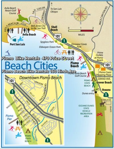 With Pismo Bike Rentals as your starting point at 470 Price Street. Pismo is full of amazing places to explore by E-Bike – whether you're riding along the shore towards Oceano or heading north to Shell Beach or Avila Beach. These bike routes are scenic, flexible, and full of chances to stop, take in the view, and enjoy the Central Coast at your own pace.